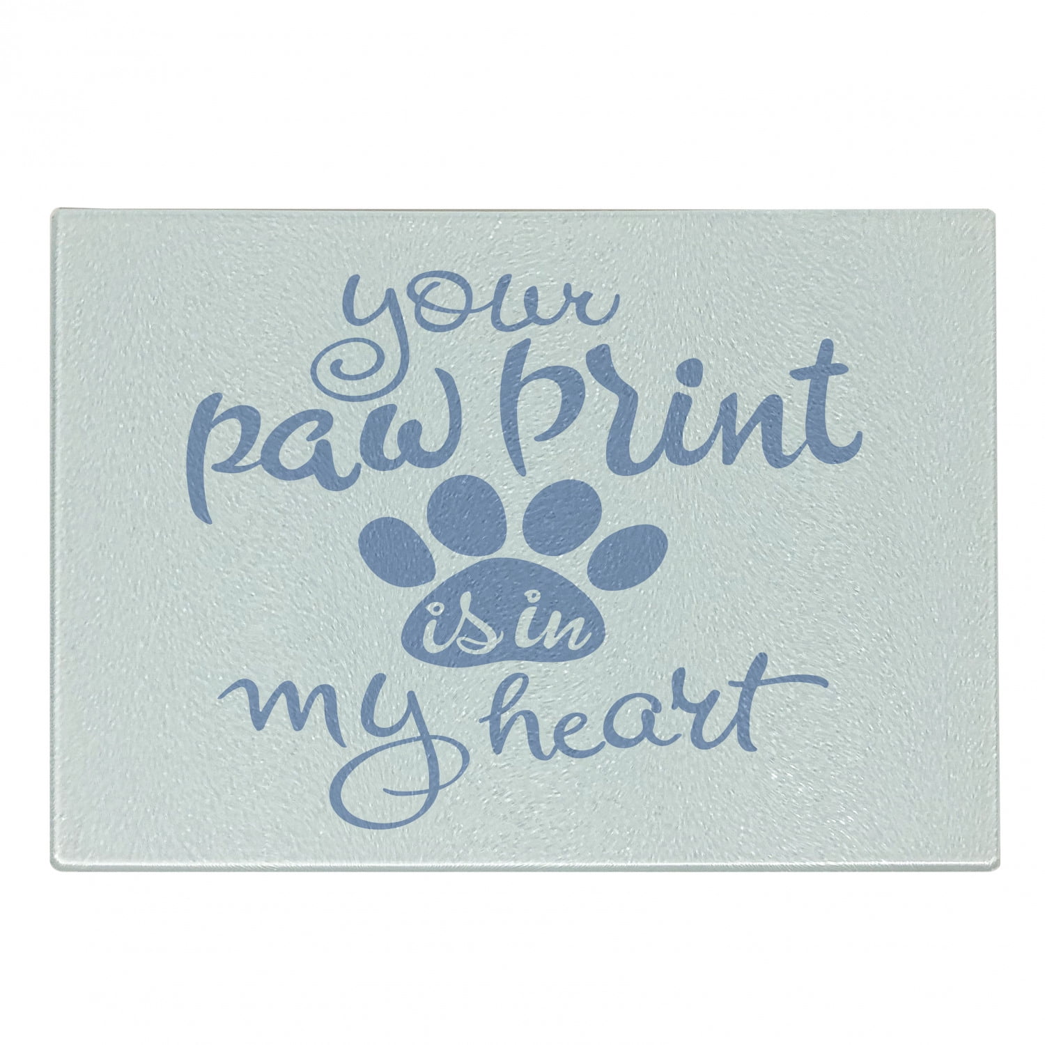 Saying Cutting Board Animal Lovers Concept Your Paw Print Is In My Heart Message With Paw Print Decorative Tempered Glass Cutting And Serving Board Large Size Ceil Blue And White By Ambesonne